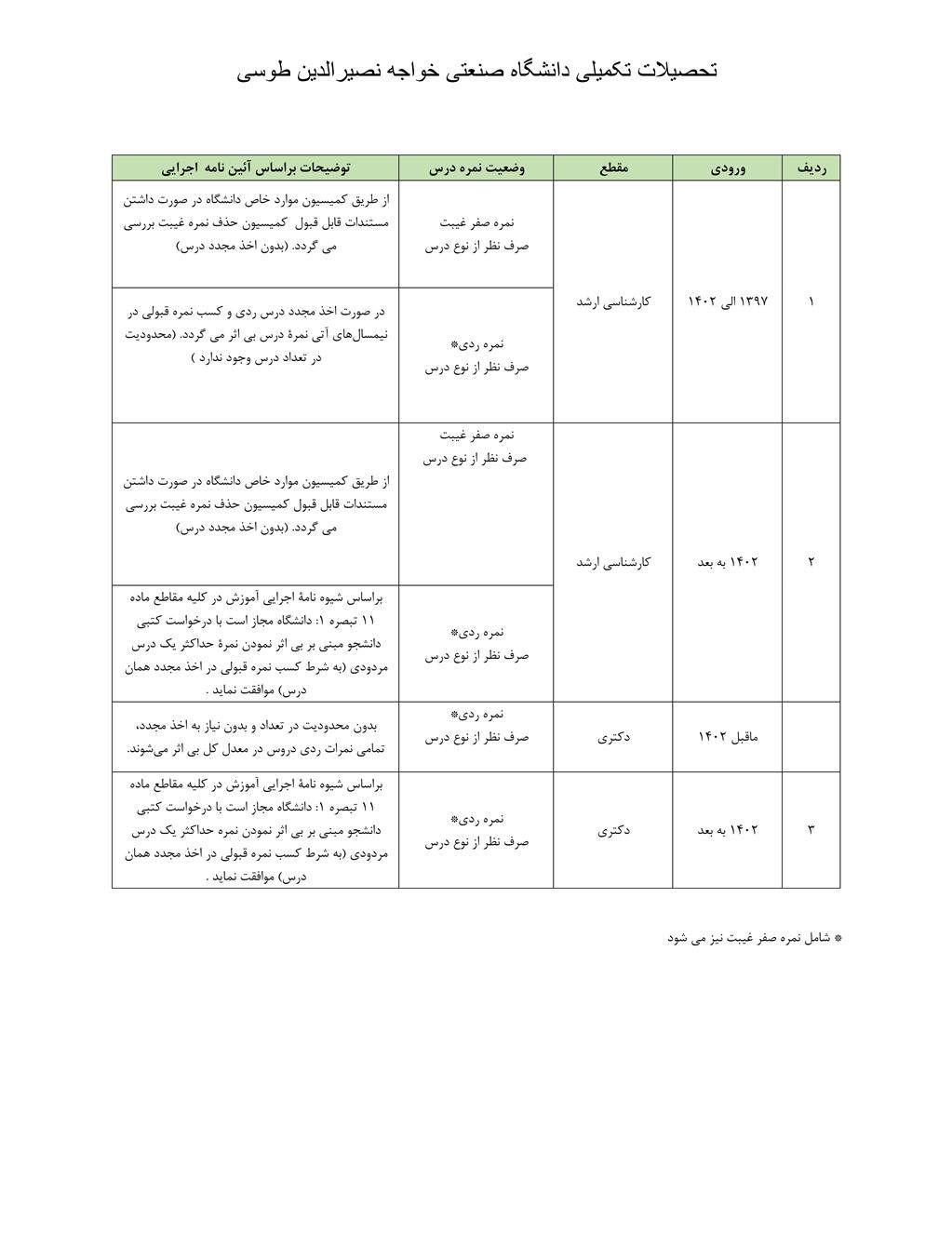 اطلاعیه مدیریت تحصیلات تکمیلی دانشگاه در ارتباط با حذف نمرات صفر و ردی - دانشكده مهندسی مواد