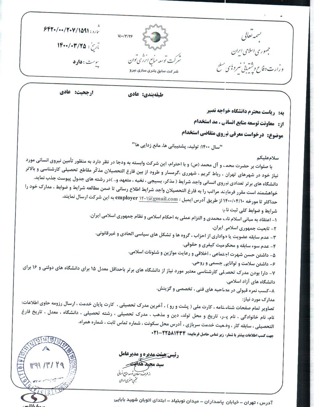 اطلاعیه معرفی نیروی متقاضی استخدام