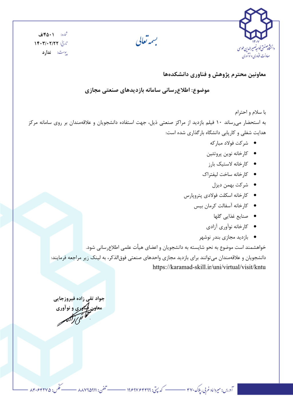 اطلاع رسانی بازدیدهای صنعتی مجازی بر روی سامانه مرکز هدایت شغلی و کاریابی دانشگاه