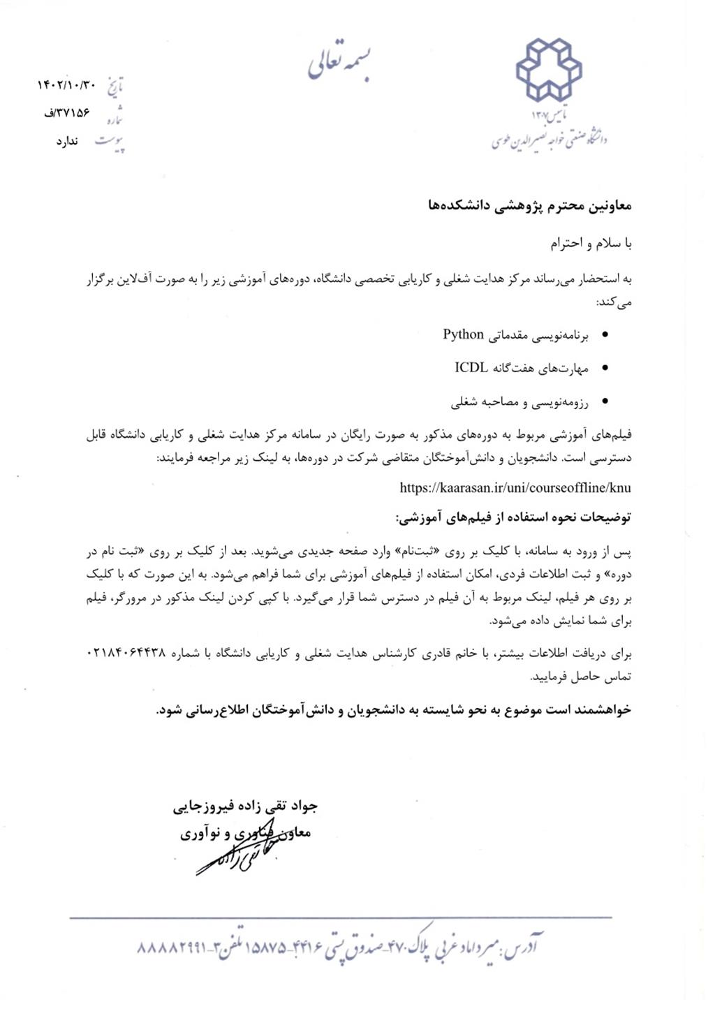 اطلاع رسانی برگزاری دوره های آموزشی آفلاین - دانشكده مهندسی مواد