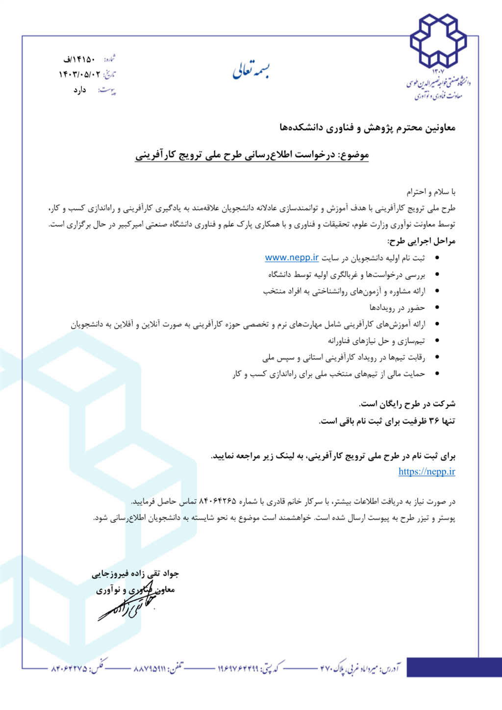 اطلاع رسانی طرح ملی ترویج کارآفرینی - دانشكده مهندسی مواد