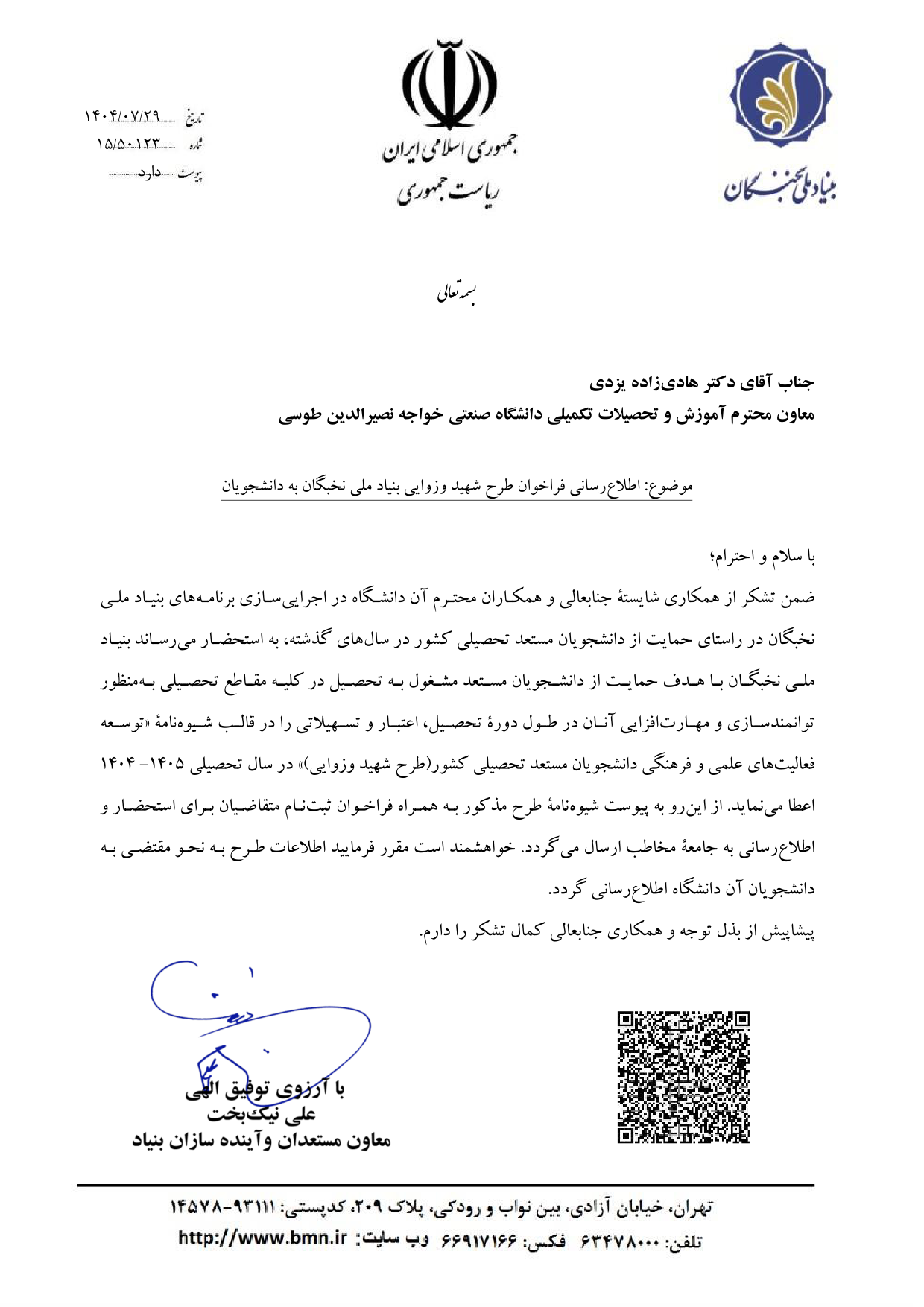 اطلاع رسانی فراخوان طرح شهید وزوایی