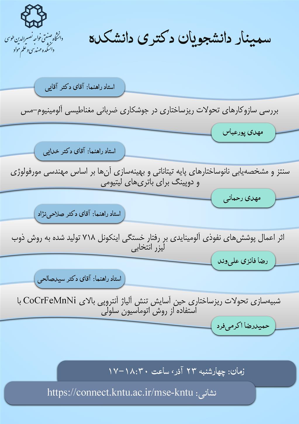 سمینار دانشجویان دکتری دانشکده - دانشكده مهندسی مواد
