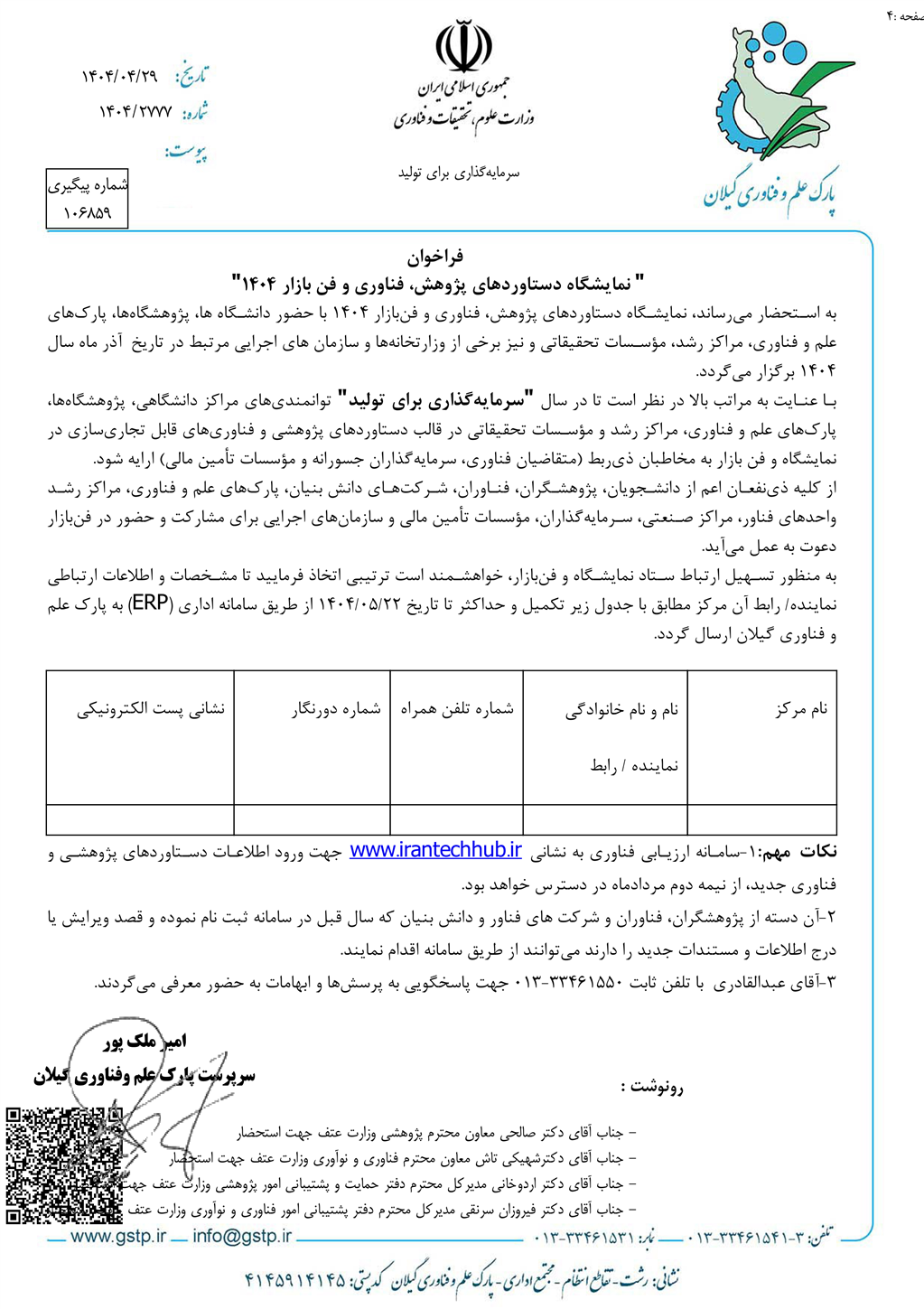 فراخوان نمایشگاه دستاوردهای پژوهش، فناوری و فن بازار 1404