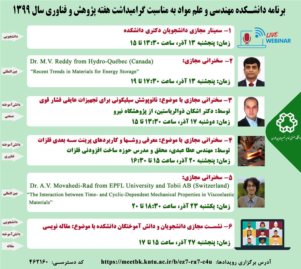 برنامه دانشکده مهندسی و علم مواد به مناسبت گرامیداشت هفته پژوهش و فناوری سال 1399 - دانشكده مهندسی مواد