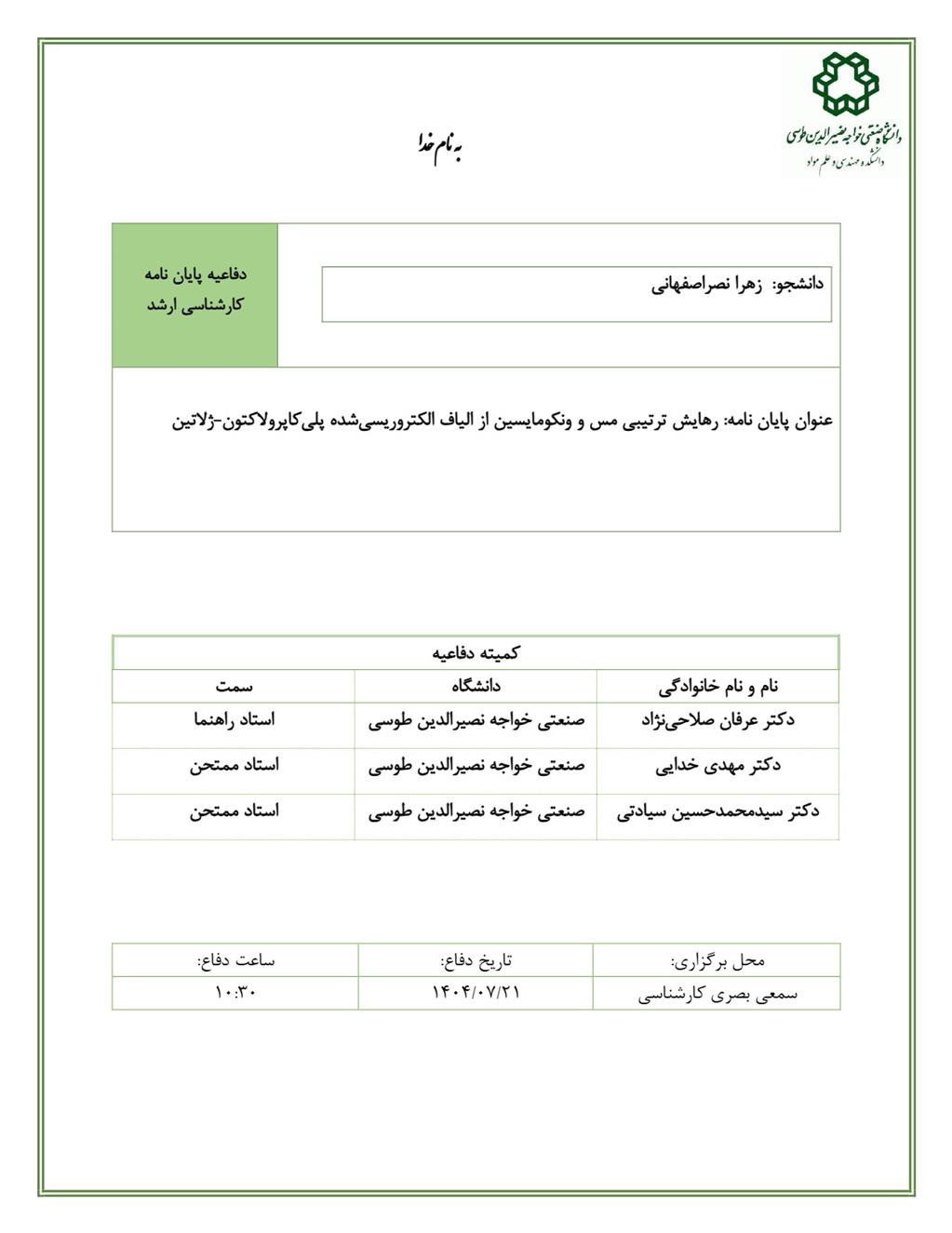 دانشجو:زهرا نصراصفهانی استاد راهنما: دکتر عرفان صلاحی نژاد