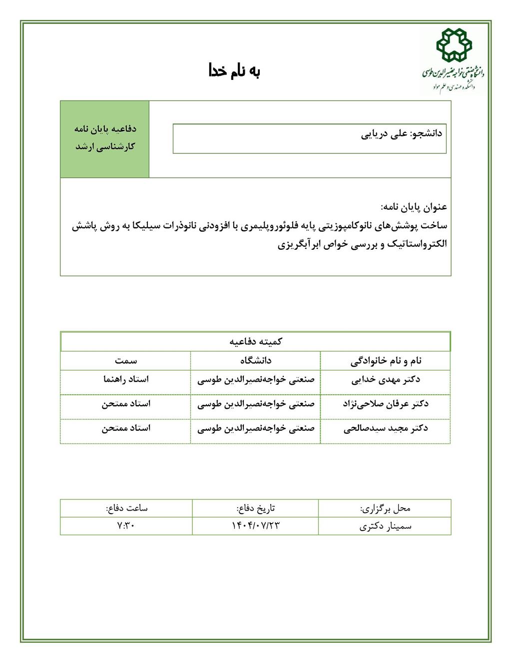 دانشجو: علی دریایی استاد راهنما: دکتر مهدی خدایی