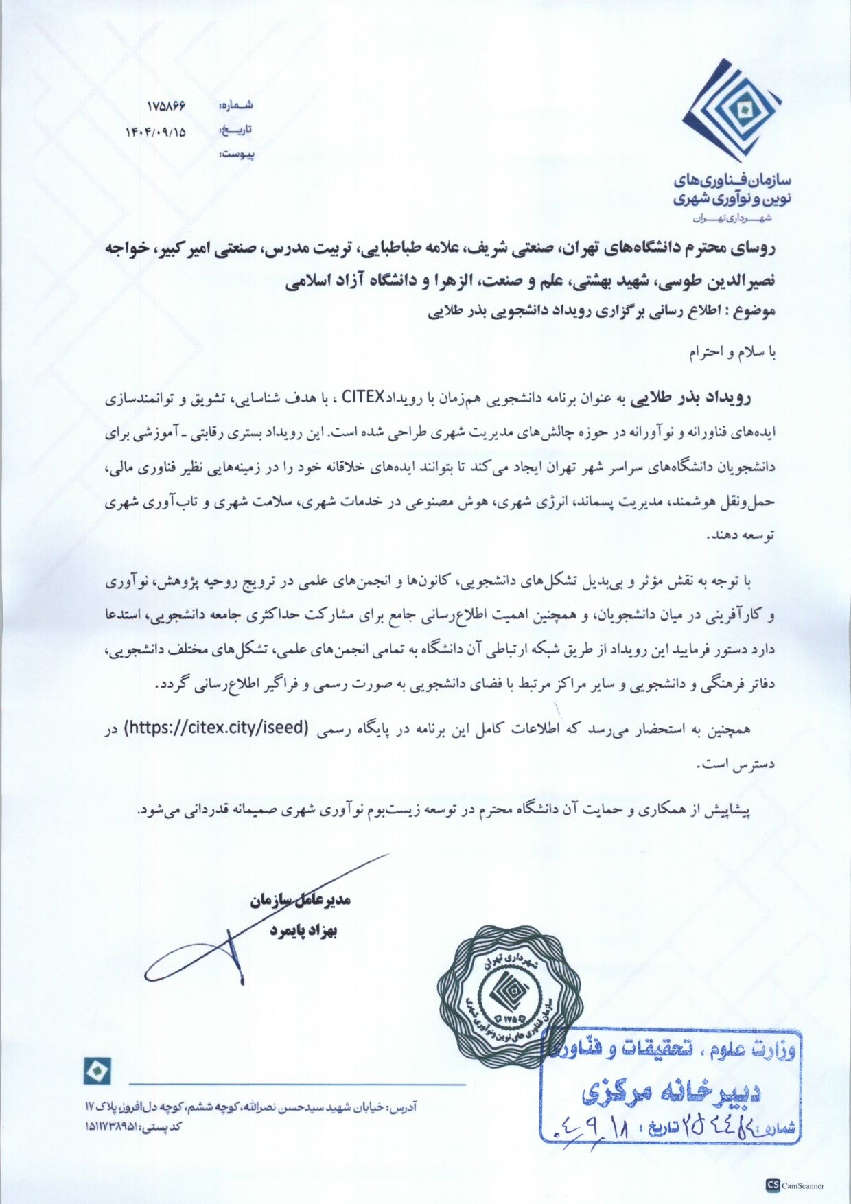 اطلاع رسانی برگزاری رویداد دانشجویی بذر طلایی