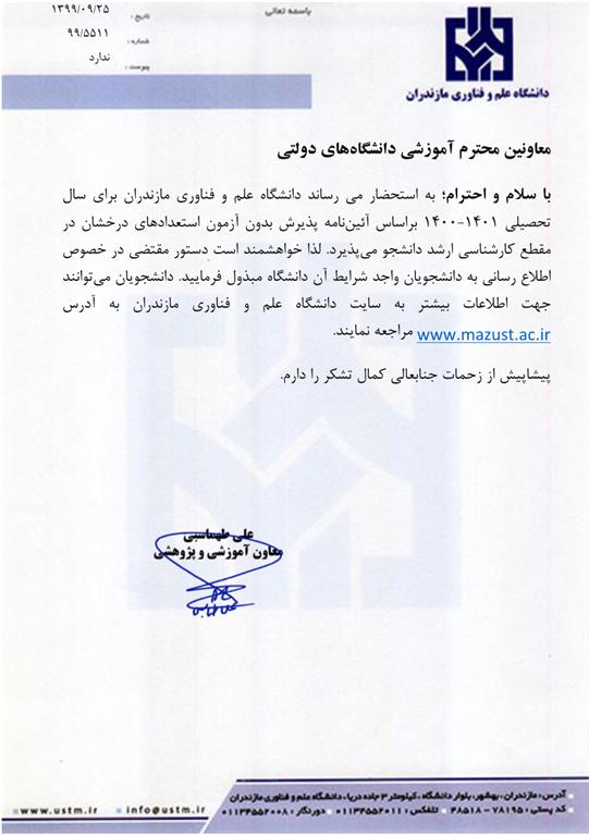 فراخوان پذیرش بدون آزمون دانشگاه های دیگر به جز دانشگاه صنعتی خواجه نصیر ( جدید و قدیم)