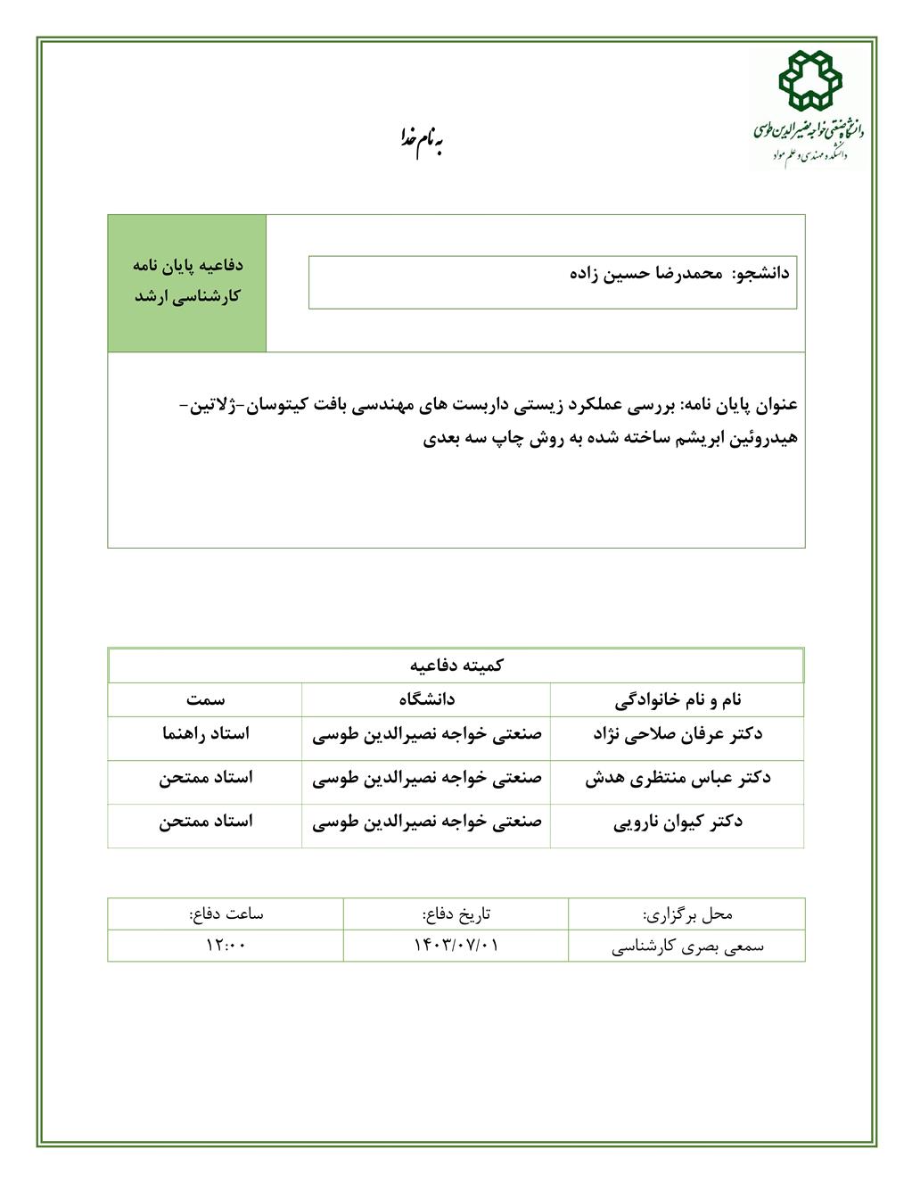 دانشجو: محمدرضا حسین زاده استاد راهنما: دکتر عرفان صلاحی نژاد - دانشكده مهندسی مواد