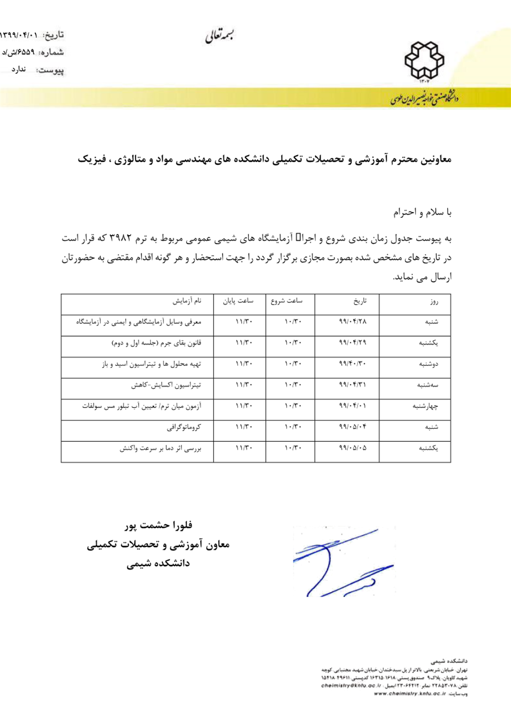 اطلاعیه آزمایشگاه های سرویسی دانشکده شیمی
