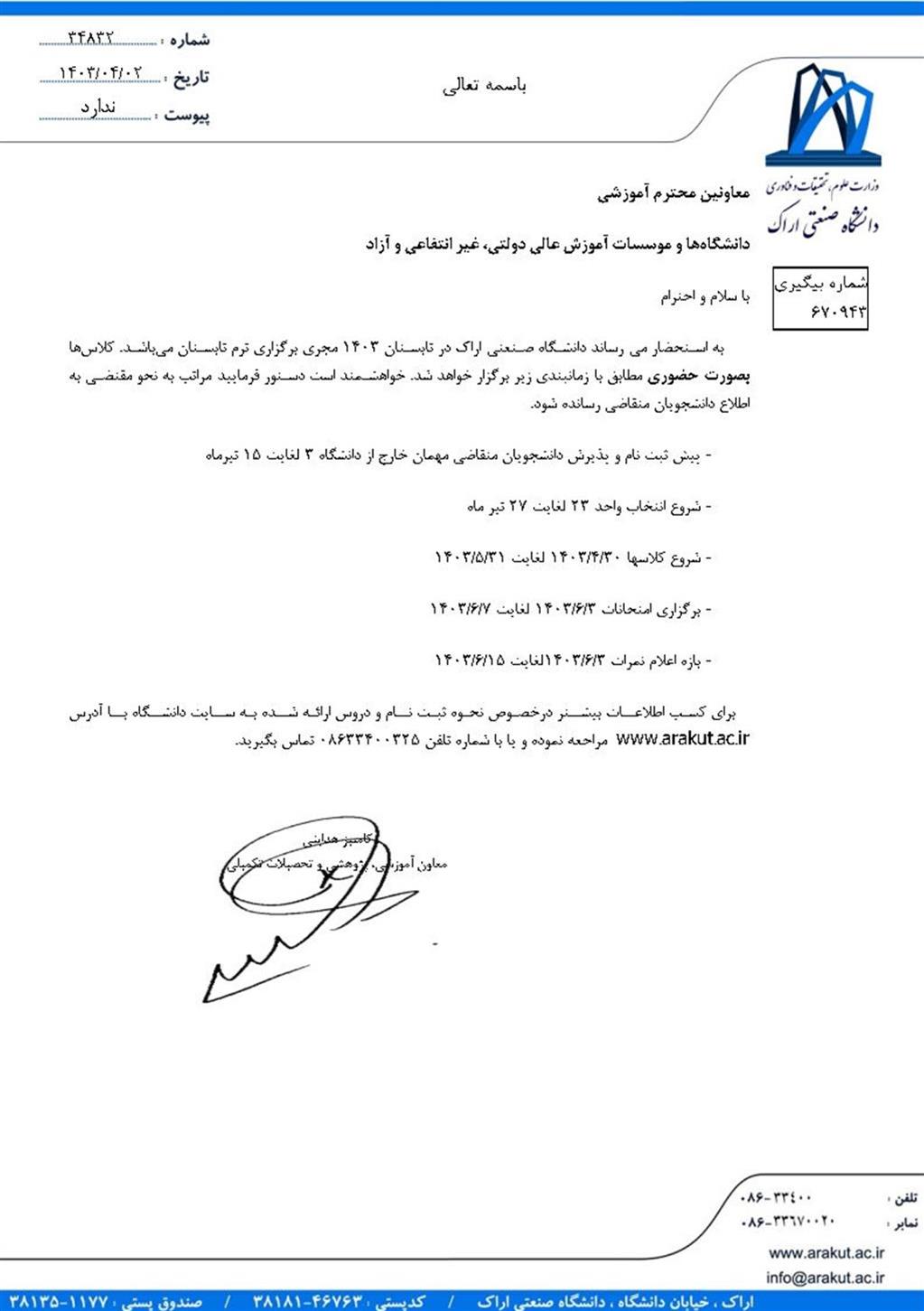 اطلاعیه برگزاری نیمسال تابستان 4031 دانشگاه صنعتی اراک