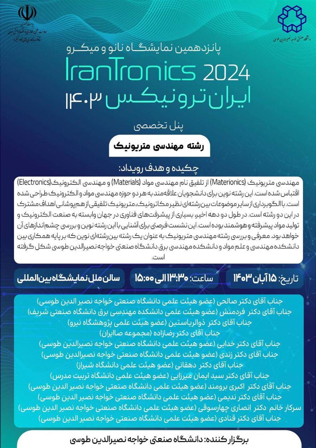 اطلاعیه پانزدهمین نمایشگاه نانو و میکرو- پنل تخصصی رشته مهندسی متریونیک - دانشكده مهندسی مواد