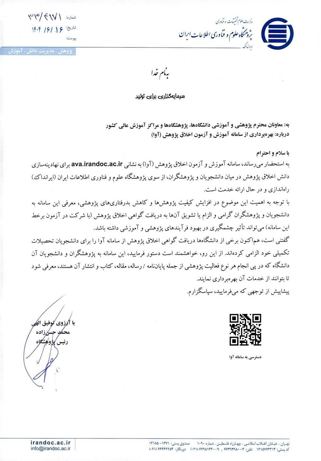اطلاعرسانی بهره برداری از سامانه آموزش و آزمون اخلاق پژوهش