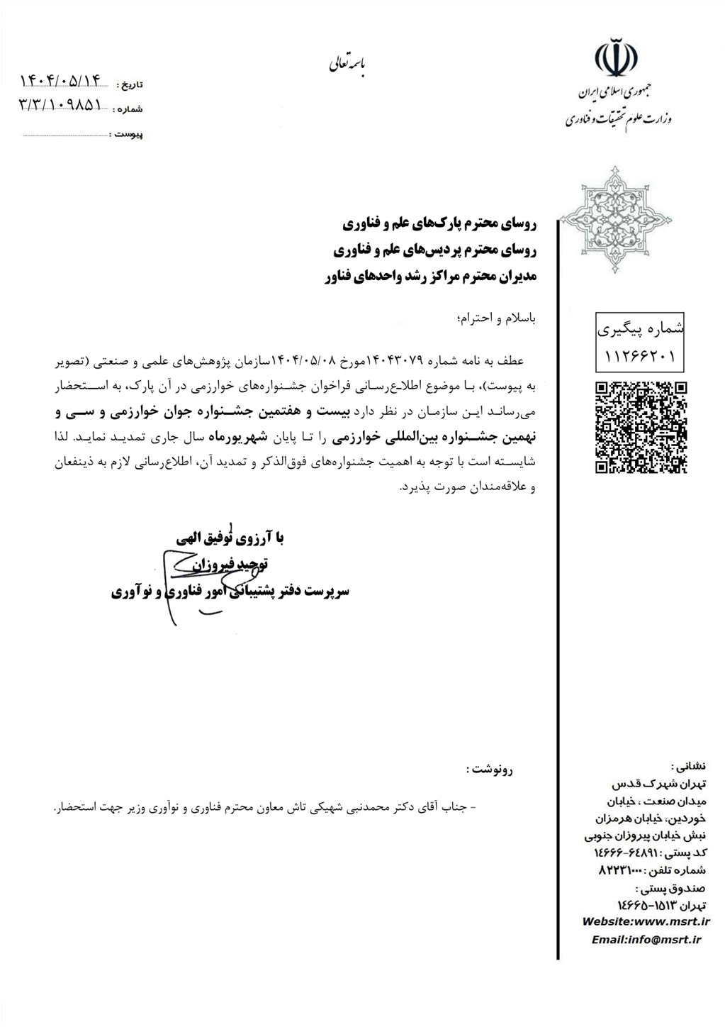اطلاع رسانی تمدید جشنوارههای خوارزمی در پارکهای علم و فناوری
