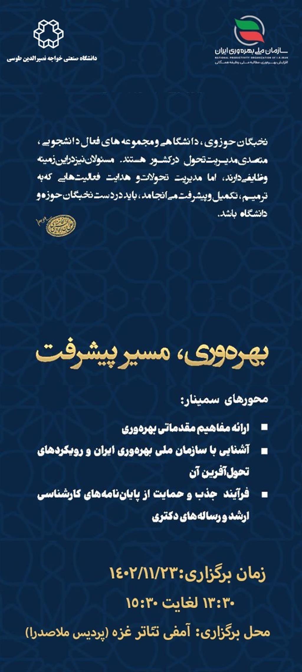 اطلاع رسانی در مورد برگزاری سمینار بهره وری، مسیر پیشرفت