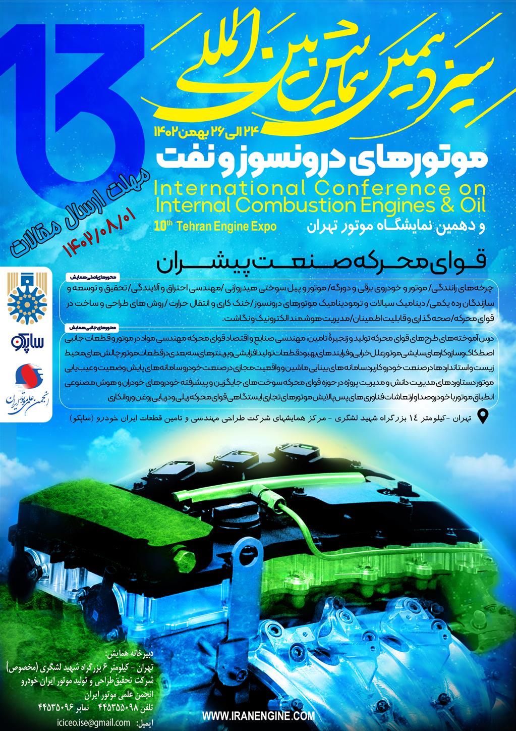 اطلاع رسانی در مورد سیزدهمین کنفرانس بین المللی موتورهای درونسوز و نفت