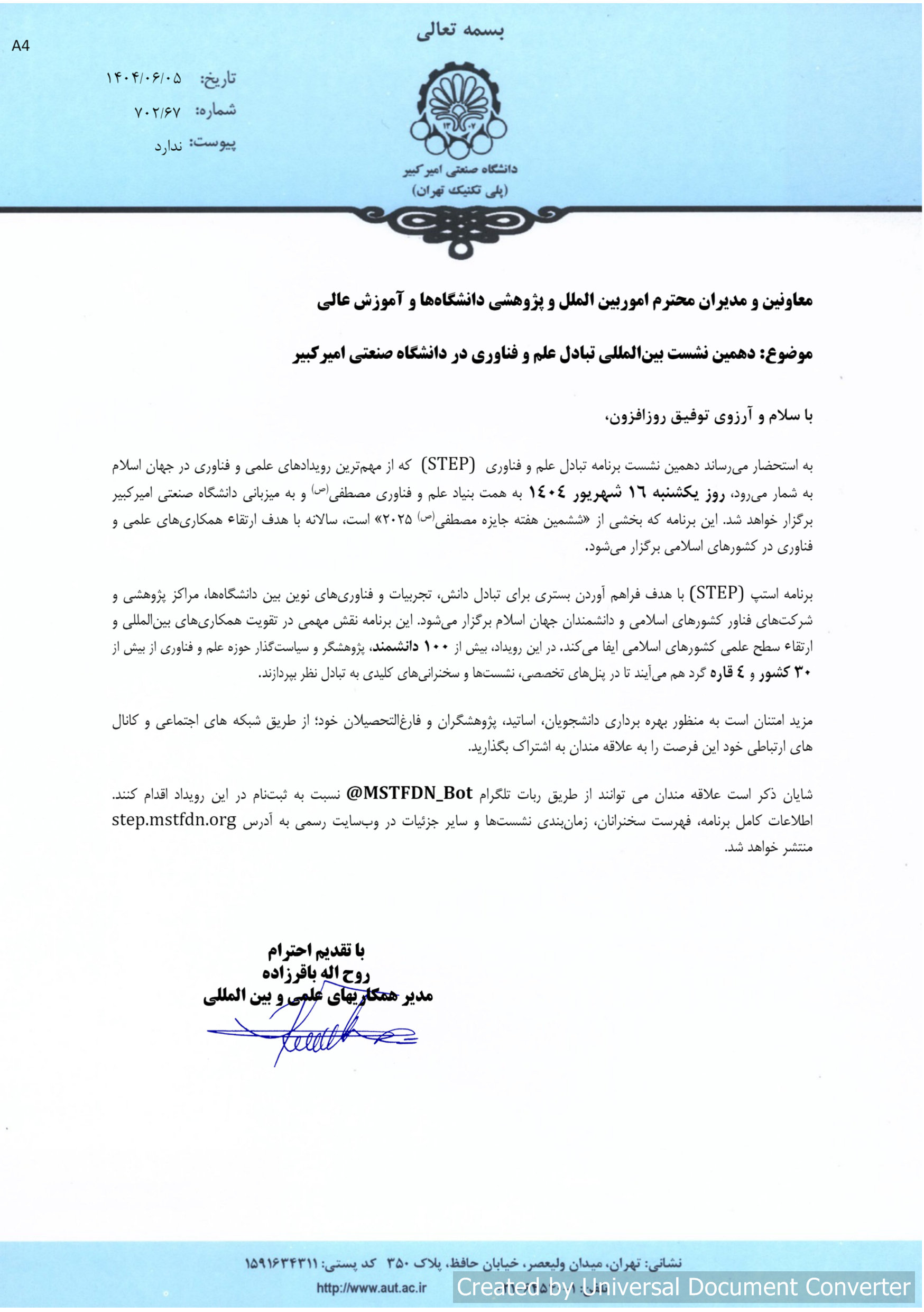اطلاع رسانی دهمین نشست بینالمللی تبادل علم و فناوری در دانشگاه صنعتی امیرکبیر