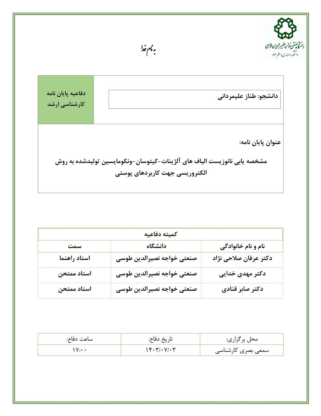 دانشجو: طناز علیمردانی استاد راهنما: دکتر عرفان صلاحی نژاد - دانشكده مهندسی مواد