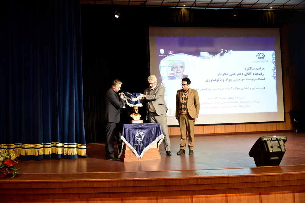 مراسم سالگرد زنده یاد پرفسور شکوه فر استاد فقید دانشکده مهندسی و علم مواد 12 اسفند 1402 در آمفی تئاتر غزه واقع در پردیس ملاصدرا برگزار گردید. در این مراسم ضمن رونمایی از گرنت پژوشی پرفسور شکوه فر به 4 دانشجوی برتر دانشکده مهندسی و علم مواد این گرنت اهدا شد.