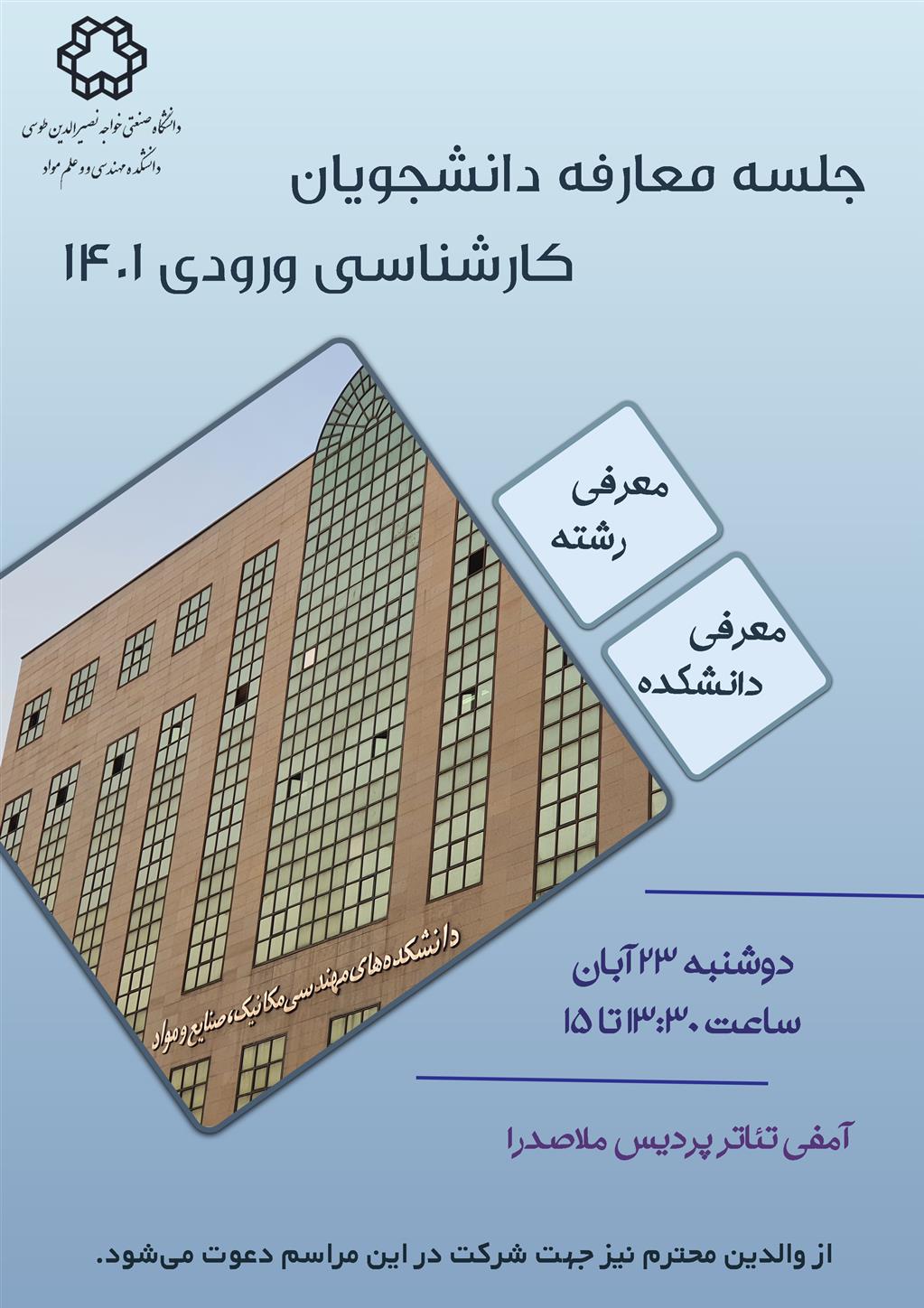 جلسه معارفه دانشجویان کارشناسی ورودی 1401 دانشکده مهندسی و علم مواد
