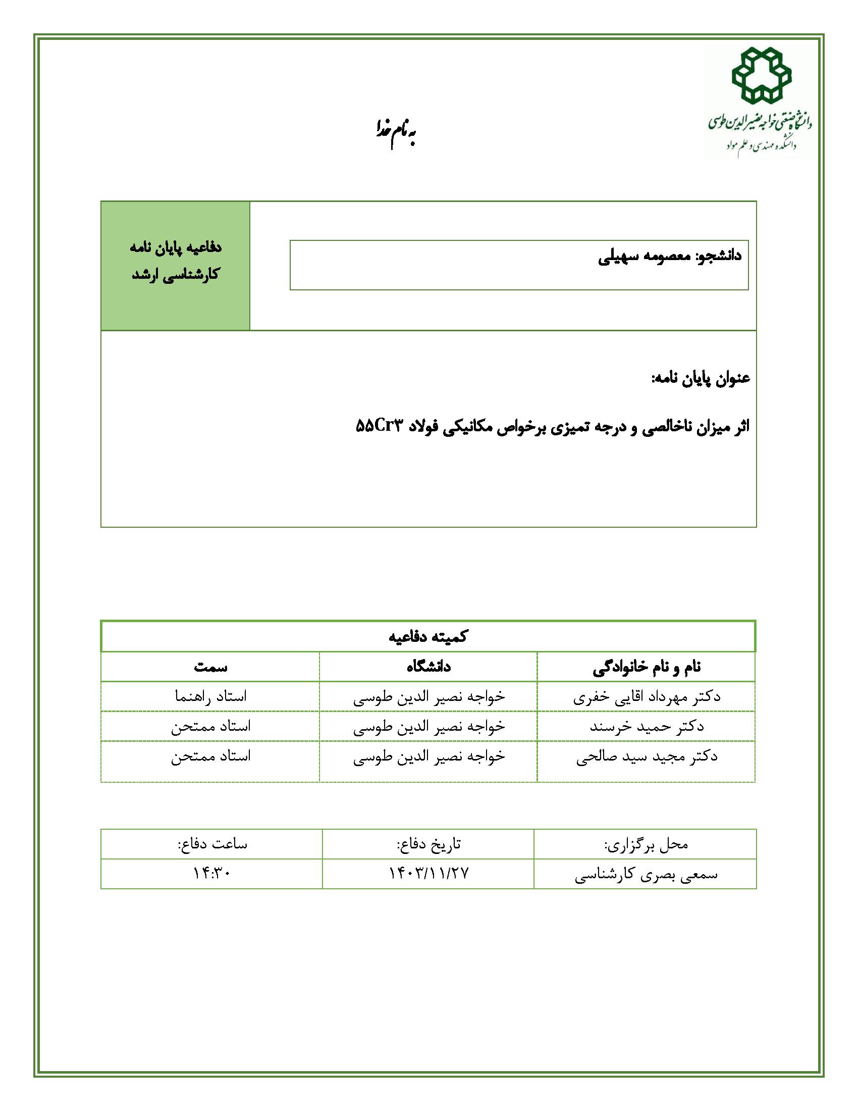 دانشجو: معصومه سهیلی استاد راهنما: دکتر مهرداد آقایی خفری - دانشكده مهندسی مواد
