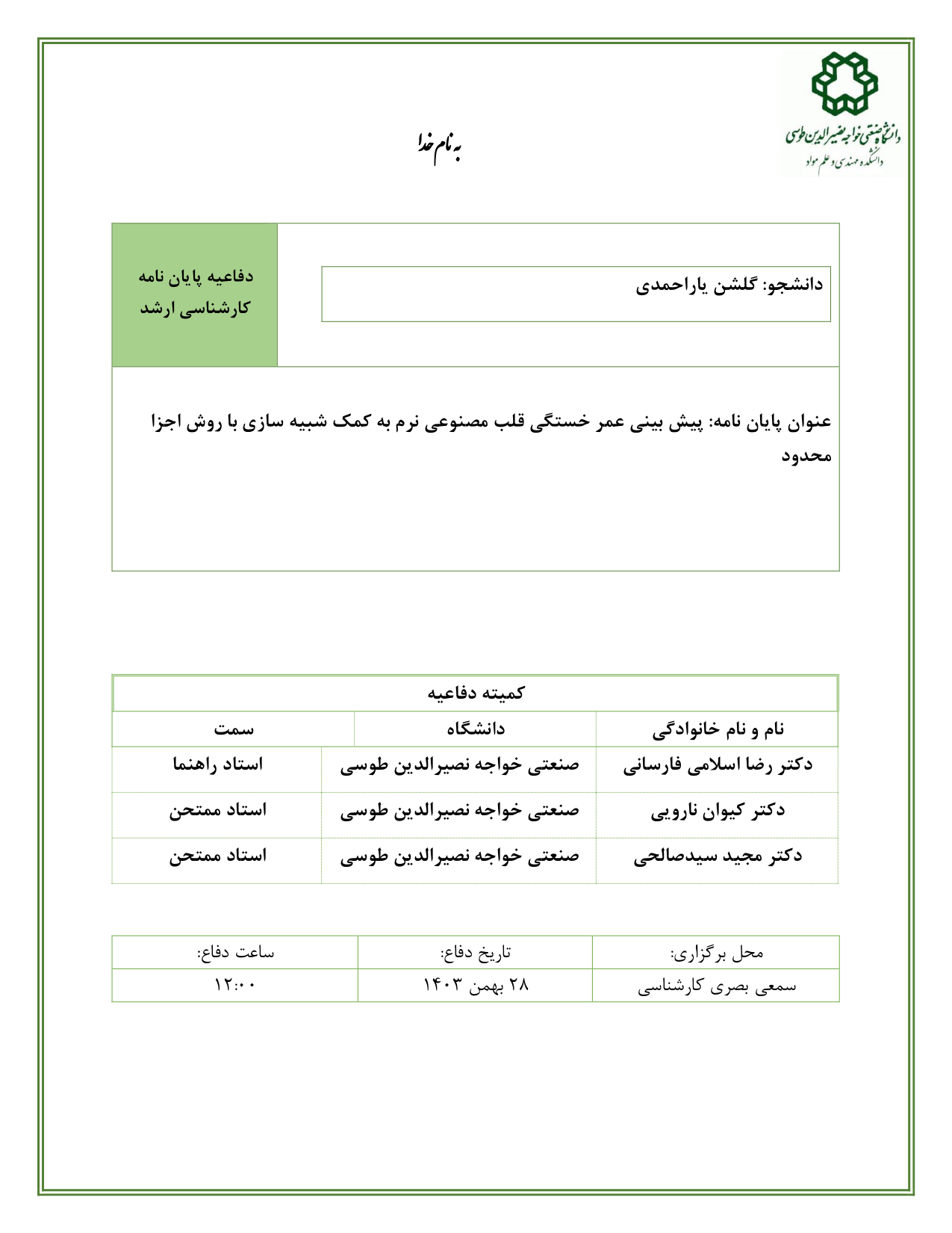 دانشجو: گلشن یاراحمدی استاد راهنما: دکتر رضا اسلامی فارسانی - دانشكده مهندسی مواد