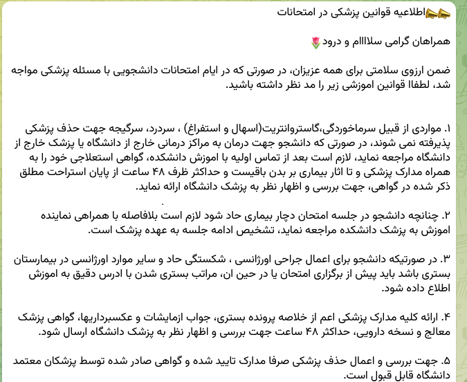 دستورالعمل حذف پزشکی توسط دانشکده در روز امتحان (تهیه شده توسط مرکز بهداشت)