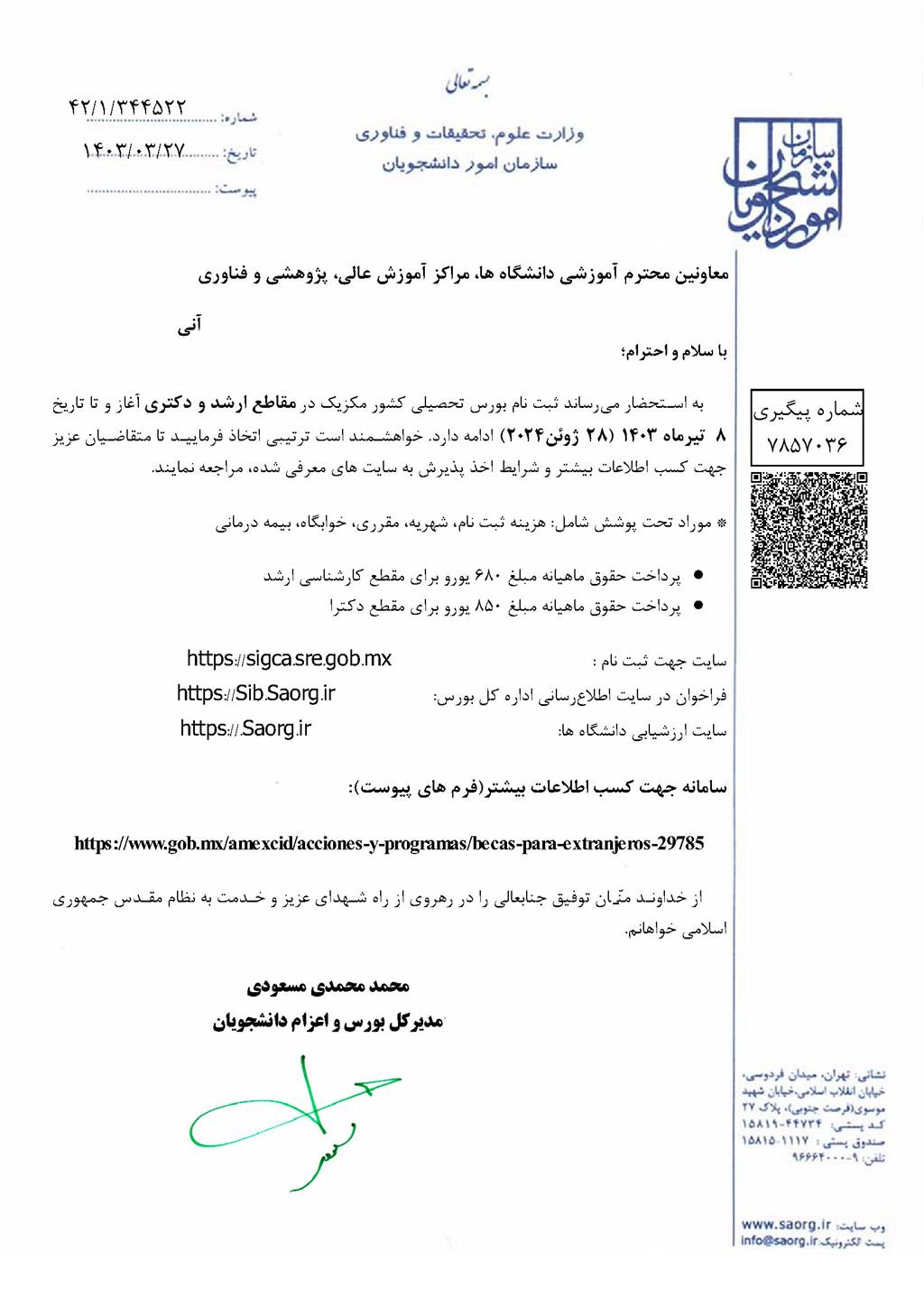 فراخوان بورس تحصیلی دولت مکزیک 2024