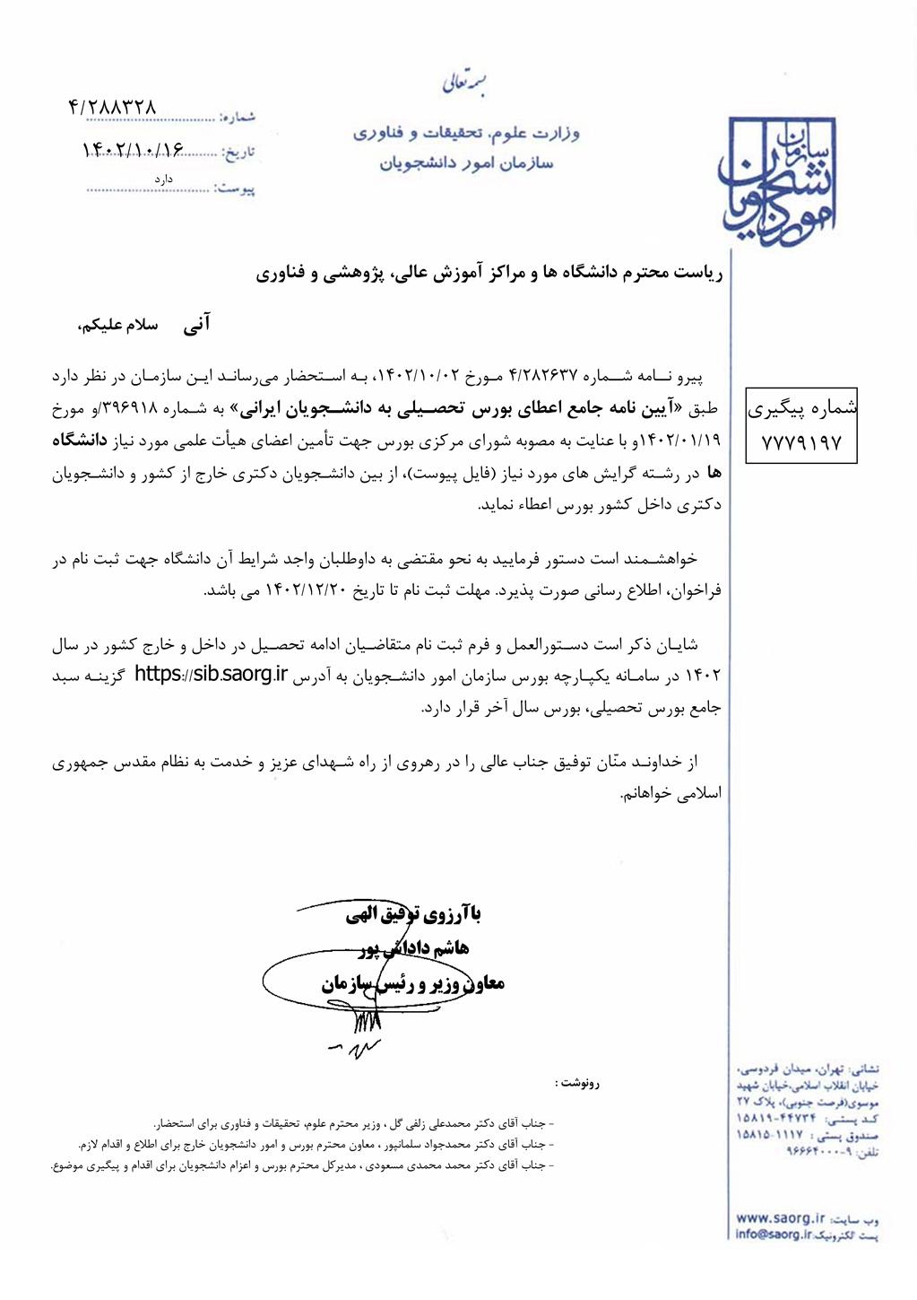فراخوان بورس سال آخر (داخل و خارج) 1402