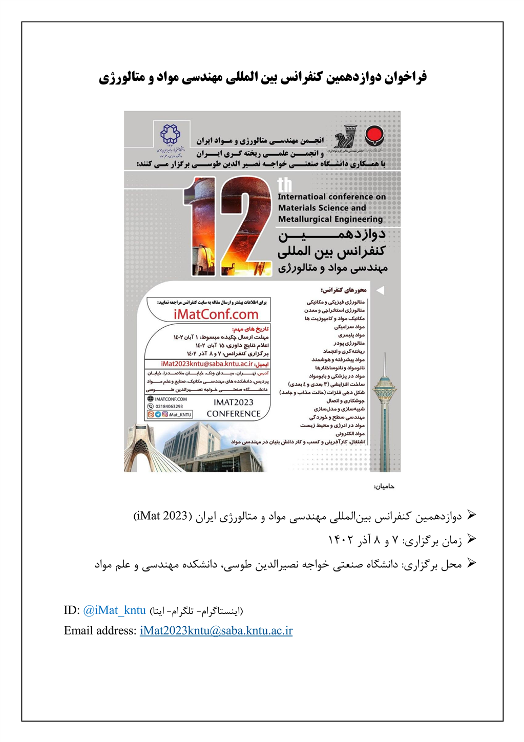 فراخوان دوازدهمین کنفرانس بین المللی مهندسی مواد و متالورژی