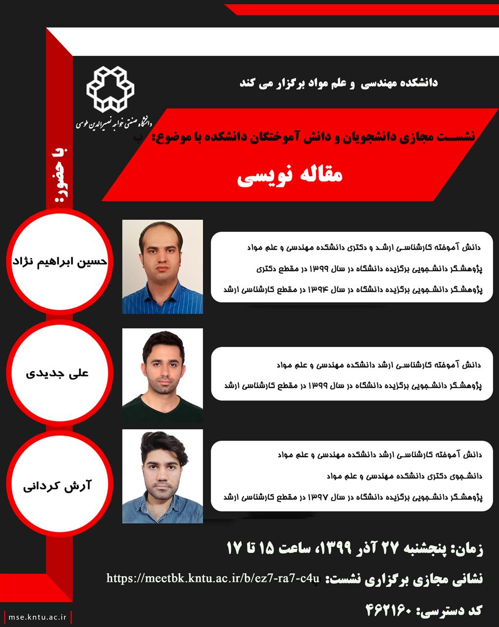 نشست مجازی دانشجویان و دانش آموختگان دانشکده مهندسی و علم مواد با موضوع مقاله نویسی