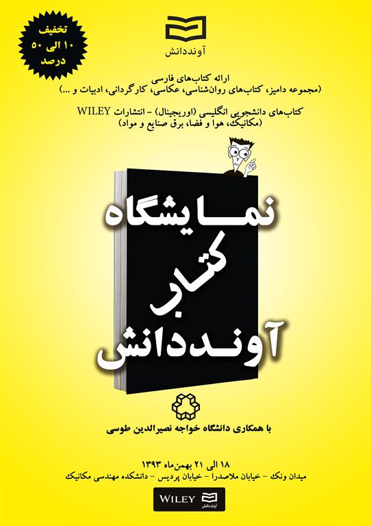 نمايشگاه كتاب آوند دانش با همكاري دانشگاه خواجه نصير الدين طوسي با تخفيف 10 الي 50 درصد برگزار ميكند.