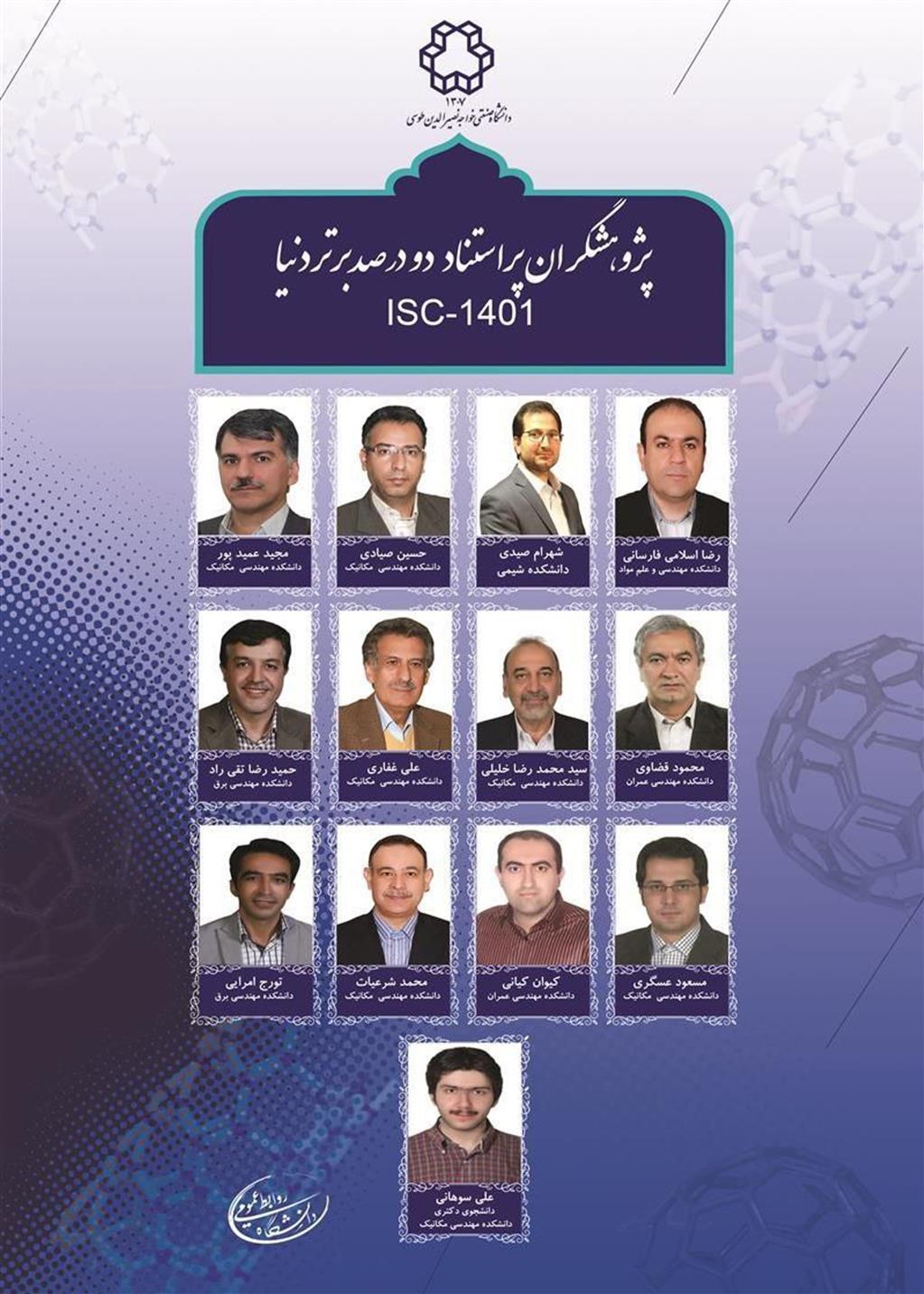 آقای دکتر رضا اسلامی فارسانی در زمره پژوهشگران ایرانی پراستناد دو درصد برتر دنیا در پایگاه استنادی علوم جهان اسلام ISC-1401