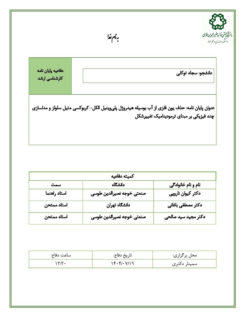 دانشجو: سجاد توکلی استاد راهنما: دکتر کیوان نارویی