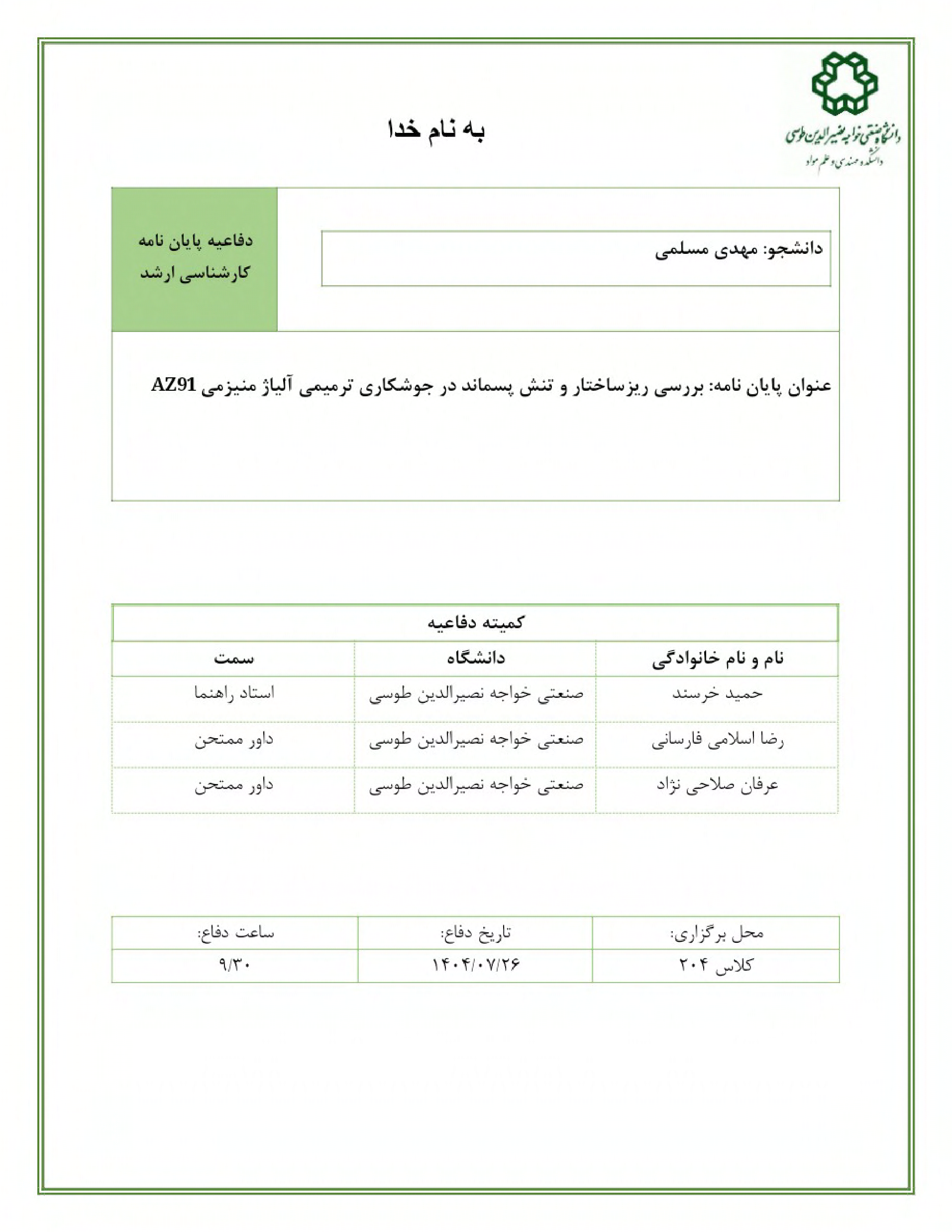 دانشجو: مهدی مسلمی استاد راهنما: دکتر حمید خرسند