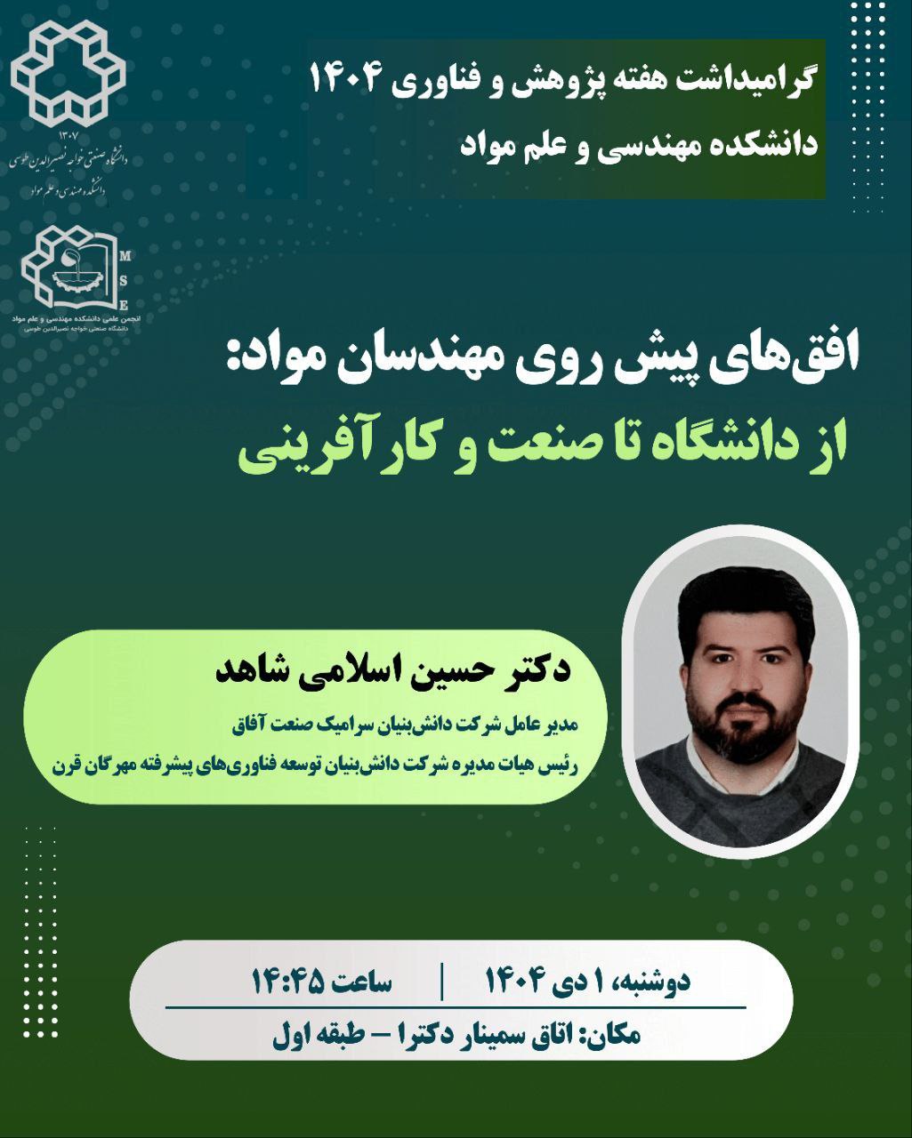 اطلاع رسانی سخنرانی های به تاریخ 1 دی به مناسبت هفته پژوهش